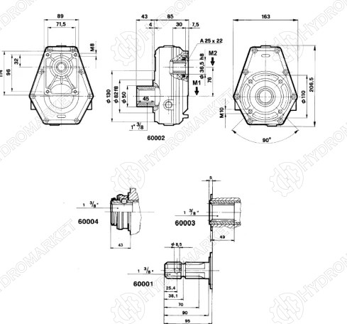 Редукторы предназначены для подключения шестеренных насосов к коробкам отбора мощности трактора. Входная скорость коробок отбора мощности составляет 540 об / мин, и ее следует отрегулировать в соответствии с надлежащими скоростями работы гидравлических насосов. Различные входные скорости также могут быть подходящими, при условии, что выходная скорость вращения вне передачи не превышает 3000 об / мин. Hidros предлагает насосы серии 60000, пригодные для использования с гидравлическими насосами группы 20.