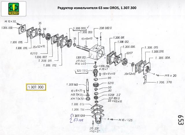 Редуктор подрібнювача 63 мм OROS, 1.307.300