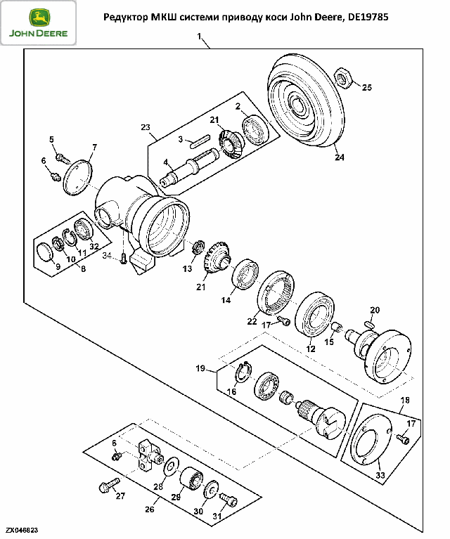 Редуктор МКШ John Deere системы привода косы, DE19785