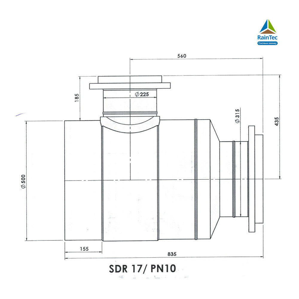 Редукционный тройник ПЕ нестандартный 500х225(фланец 200)х315(фланец 300) PN10