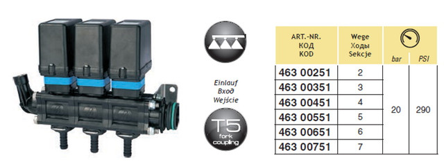 Блок электроклапанов серии 463 ON/OFF с вилочным соединением T5