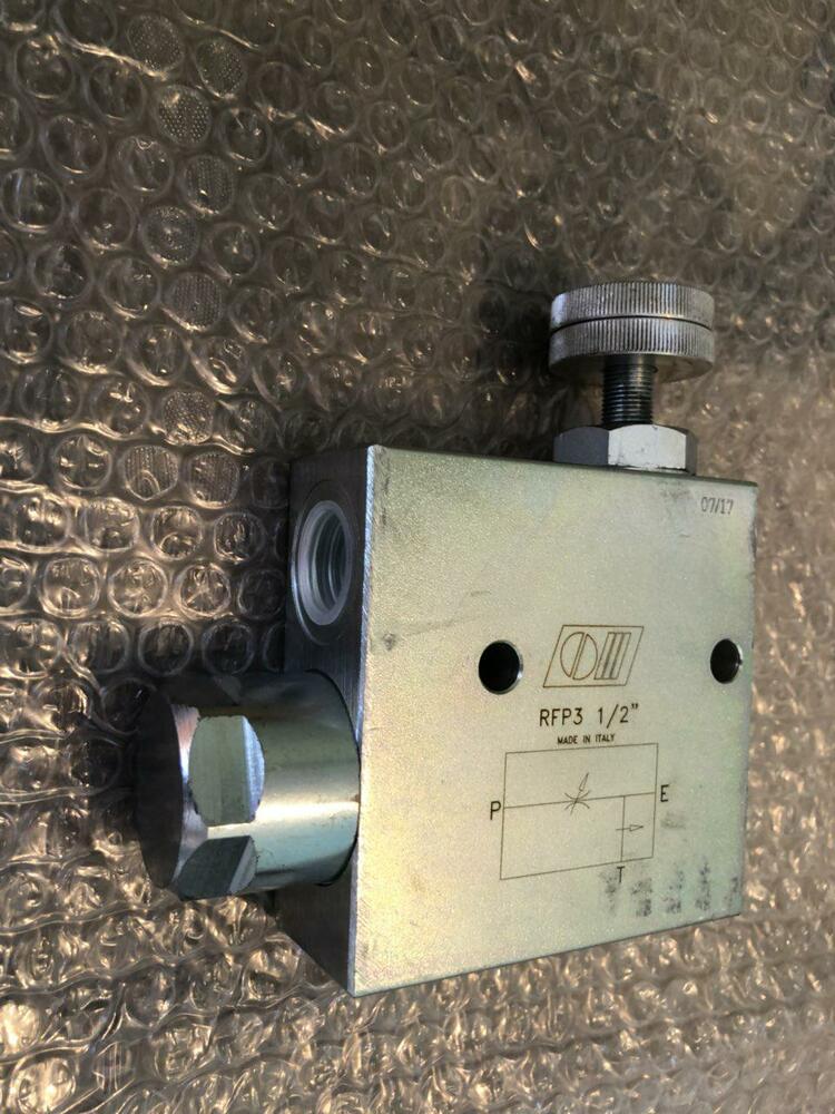 Высококачественный регулятор расхода 3 Ports flow control valve RFP3 3/8 3х линейный на 60 л/мин со встроенным обратным клапаном для сброса гидравлического масла в бак , производства Италии используется для мобильной и станочной гидравлики, великолепная замена отечественных регуляторов расхода типа МПГ55, нет необходимости установки дополнительной монтажной плиты и клапана сброса.