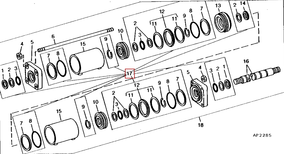 Ремкомплект на мастер-цилиндр техники John Deere. АНАЛОГ.