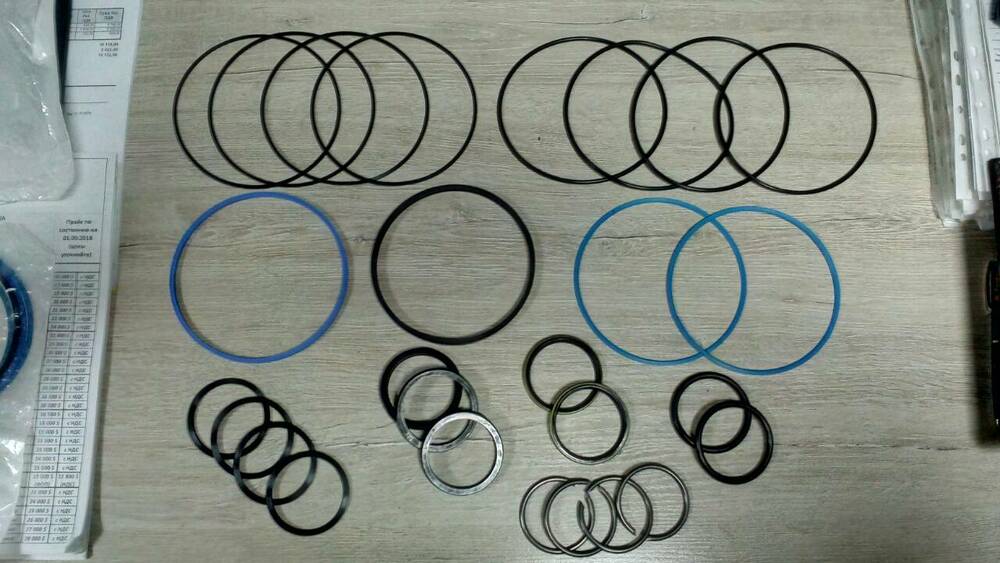В комплект входят все необходимые грязесьемники, уплотнения штока, уплотнения поршня, уплотнительные кольца круглого сечения, опорные и направляющие кольца для замены их в цилиндре.