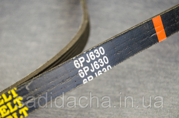 Ручейковый ремень для бетономешалки 6PJ630. Ремень привода с двигателя на шкив, редукторный принцип.