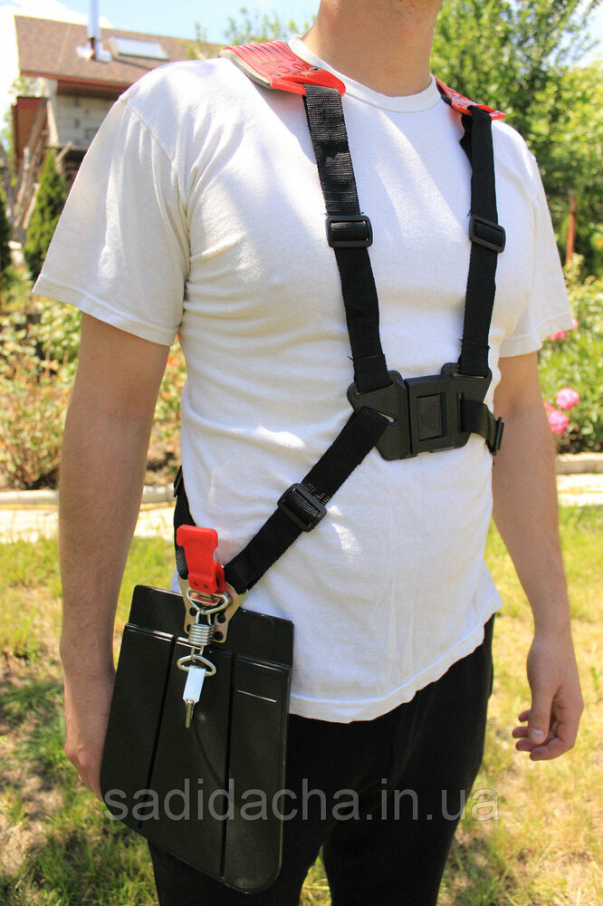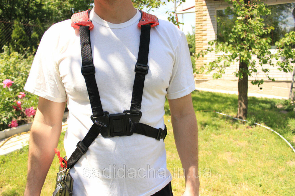 Двоплечивой ремень на мотокосу,триммер имеет мягкие подкладки для плеч.