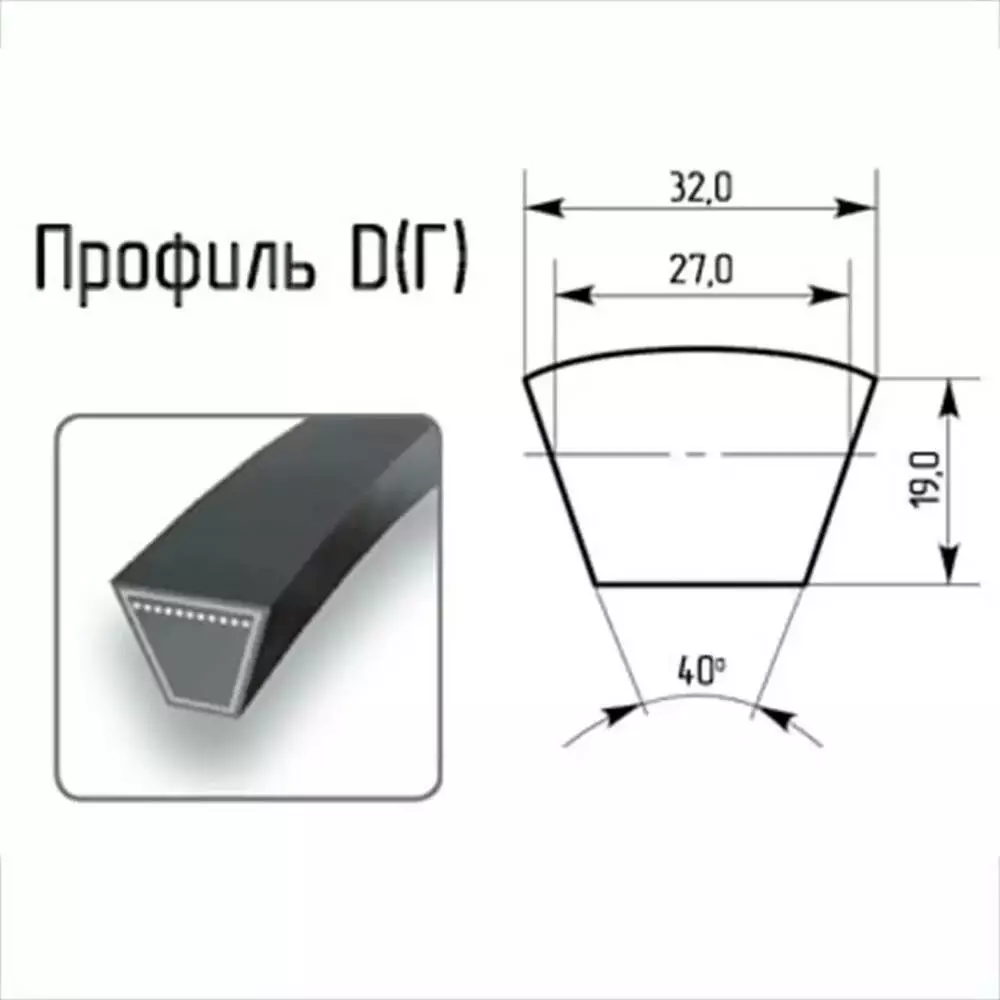 Привідний ремінь класичного профілю D(Г) розмір 32x19 мм, що складається з гумової основи зміцненої тканинним кордом. Виробник Endura (Індія).