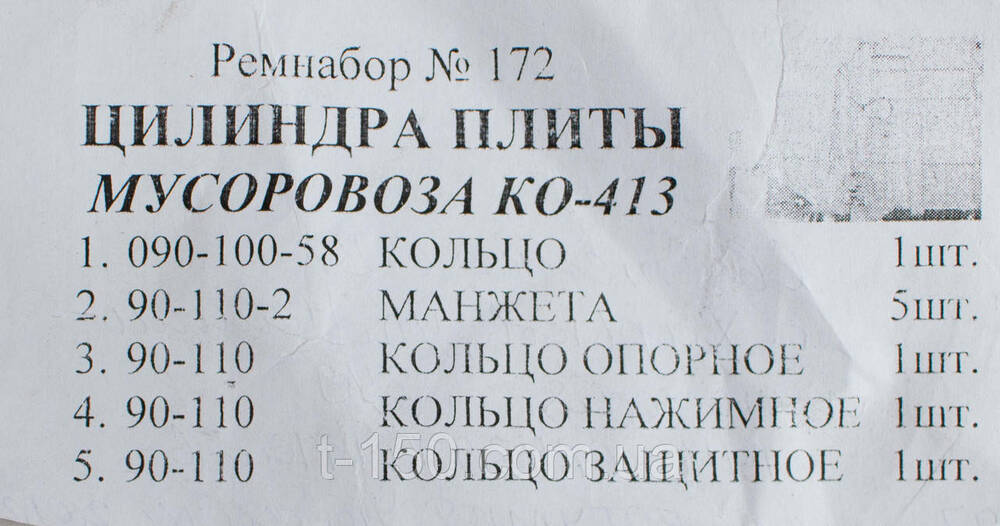 Ремкомплект  гидроцилиндра плиты мусоровоза КО-413 (на базе ЗИЛ-130) КО-413