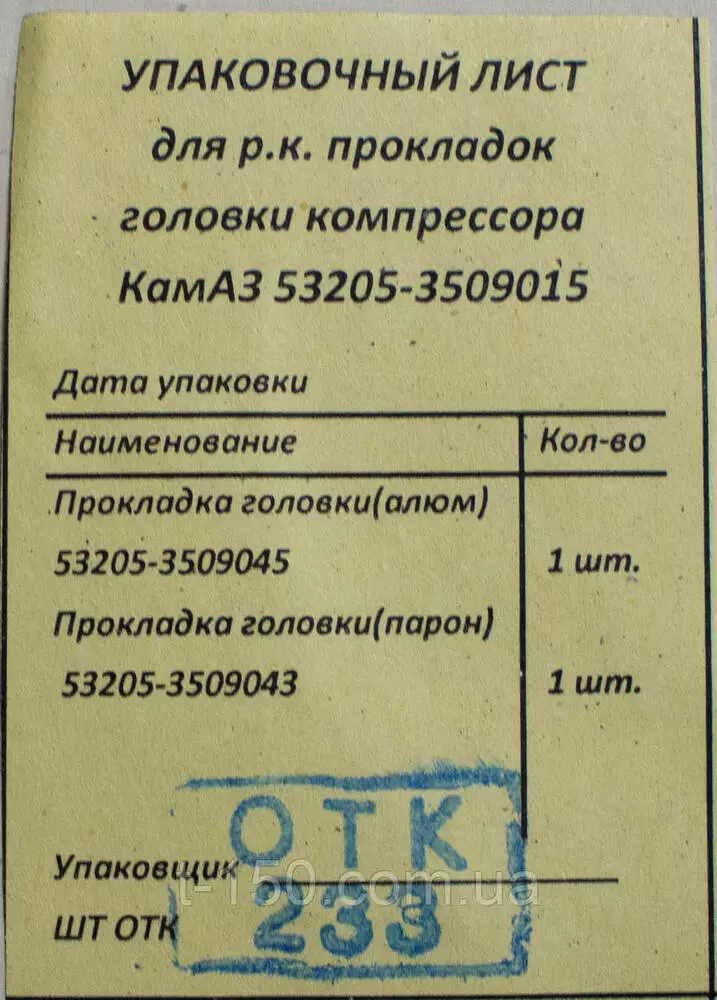 1.      53205-3509045 Прокладка головки (паронит) - 1шт.