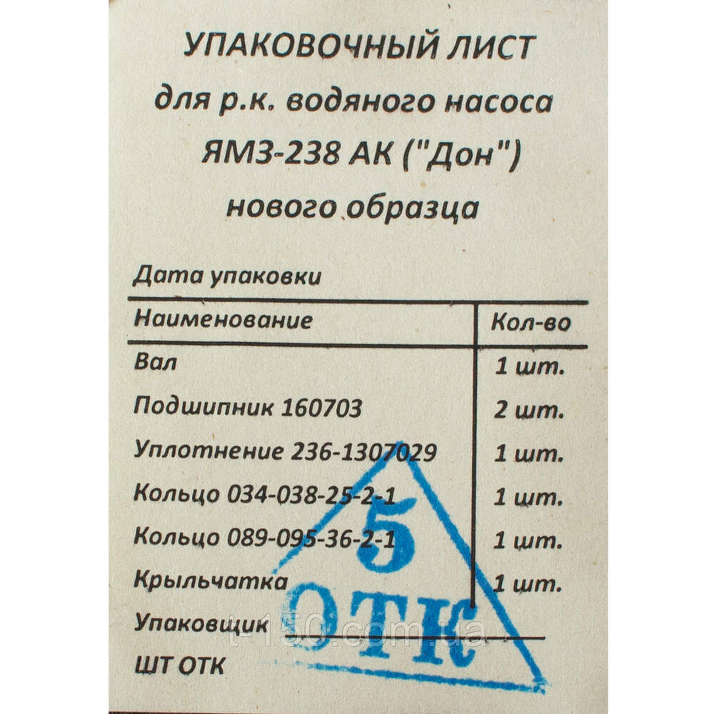 Ремкомплект насоса водяного ДОН-1500 ЯМЗ-238АК, нового образца с крыльчаткой