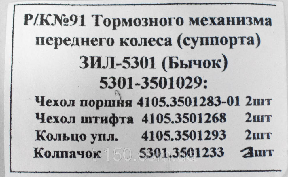 Ремкомплект тормозного механизма переднего колеса (суппорта) ЗИЛ-5301 Бычок, силикон