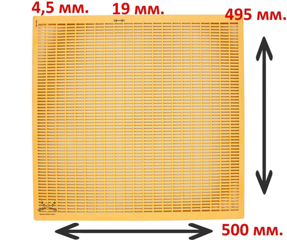 Разделительная (ганемановская) решетка Никот применяется в корпусных ульях для разграничения и недопущения в медовые корпуса маток и трутней.