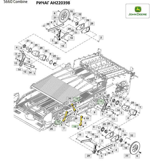 16 - Рукоять 6 № детали : AH220398 Замечания : INCLUDES AH125200