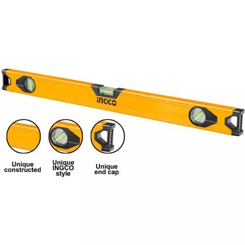Будівельний алюмінієвий рівень 600 мм INGCO — інструмент для виявлення відхилення поверхні по горизонталі та вертикалі.