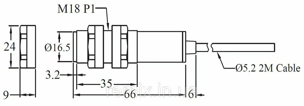 Фотодатчик рефлекторный цилиндрический М18 с резьбой L=35mm