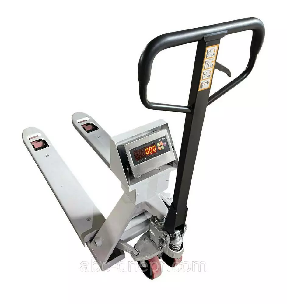 Весовой индикатор комплектуется аккумулятором, полиуретановые колеса и гладкая поверхность вил на рокле.