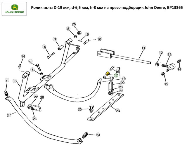 Ролик иглы D-19 мм, d-6,5 мм, h-8 мм на пресс-подборщик John Deere, BP13365