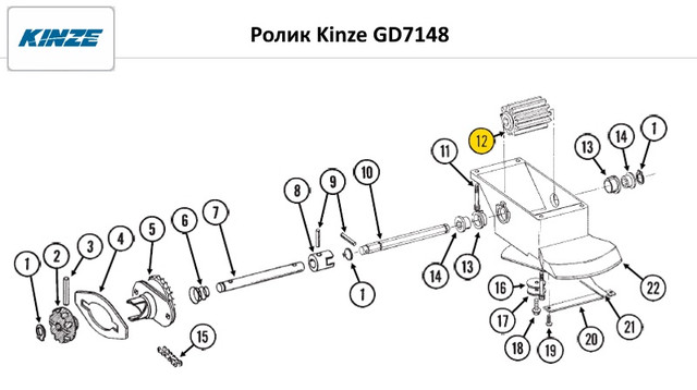 12.- GD7148 - 1 Feed Roller, Hex Bore