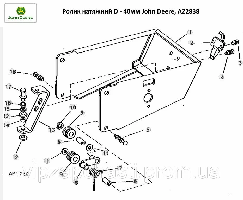 Ролик натяжной d - 16 мм, D - 40 мм, h - 22 мм John Deere, A22838