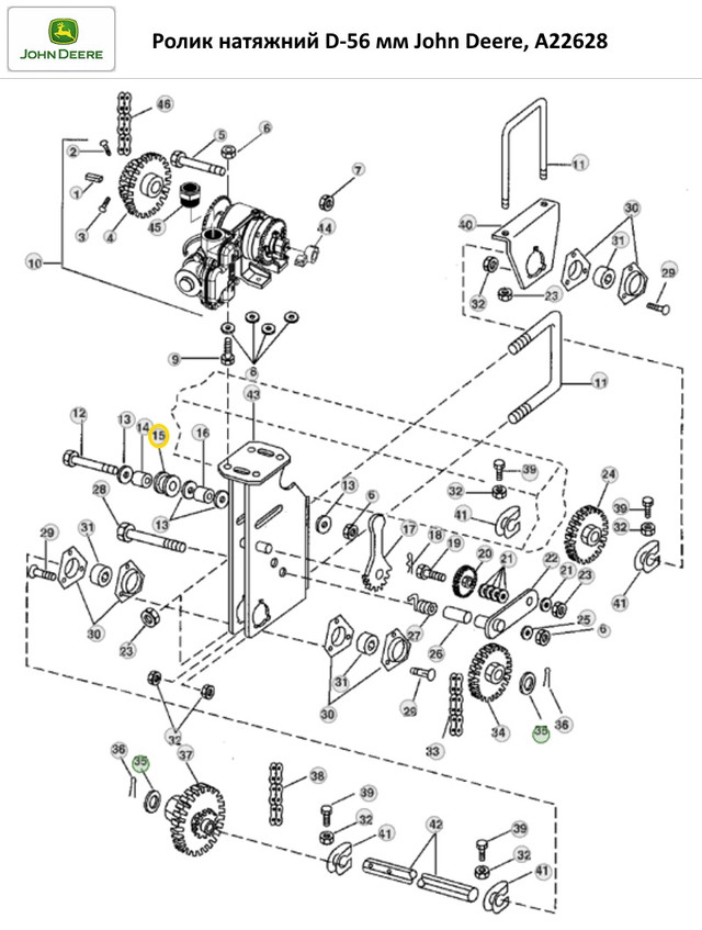 Ролик натяжний d - 17 мм, D - 56 мм, h - 33 мм John Deere, А22628