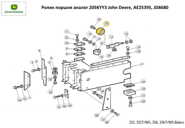 Ролик поршня аналог 205KYY3 John Deere, AE25395, JD8680