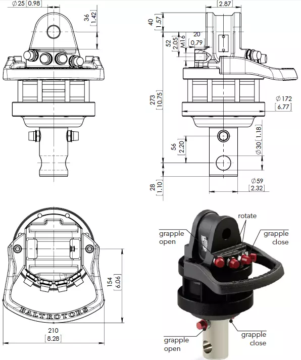 Нижнее присоединение - присоединение ротатора к грейферу с помощью ОСИ.