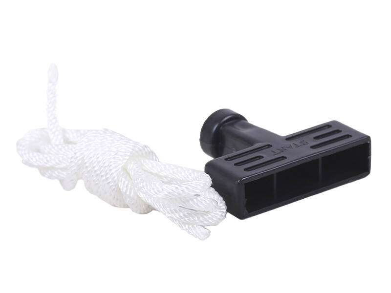 Ручка стартера с веревкой ТАТА на бензиновый двигатель 168F/170F является составляющими элементами ручного стартера, предназначенного для запуска бензинового двигателя мощностью 6-7 л.с. с воздушным охлаждением. Пластиковая ручка имеет эргономичный дизайн и удобный хват, позволяющий прилагать значительные усилия для запуска двигателя без неприятных ощущений. Дополнительные ребра жесткости внутри рукояти усиливают конструкцию и делают ее долговечной. Плетеный шнур толщиной 4мм из синтетического материала обладает высокими разрывными характеристиками и будет служить длительное время без повреждений. Замена элементов ручного стартера не требует специальных знаний и инструментов.
