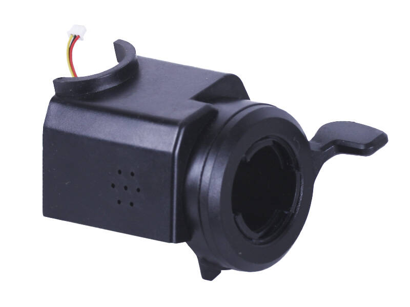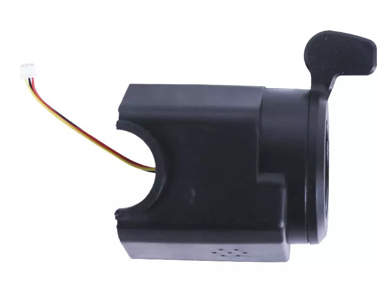 Рычаг газа с корпусом правым ТАТА на электросамокат S1 - элемент управления электросамокатом, предназначен для регулировки частоты вращения моторколеса и как следствие скорости движения транспортного средства. Состоит из пластикового корпуса, в котором расположен магнитный датчик положения ручки газа и сам рычаг акселератора с установленным на нем постоянным магнитом. При нажатии на рычаг магнит перемещается относительно датчика Холла, что приводит к изменению управляющего сигнала поступающего на контроллер электродвигателя. Использование магнитного датчика лишает конструкцию трущихся элементов и делает устройство крайне надежным и долговечным.