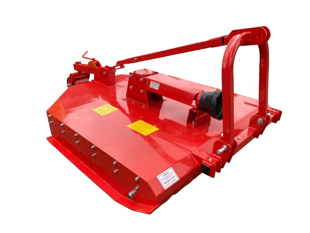 Этот садовый инструмент, известный как роторный измельчитель, крепится на трёхточечную навесную систему трактора, подходящую для техники мощностью от 25 л.с. Привод осуществляется через карданный вал, который соединяет вал отбора мощности трактора с редуктором косилки, приводящим в движение ротор с ножами.