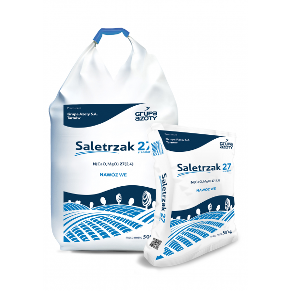 Гранулированное удобрение, однородные гранулы с коричневым до бежевого цвета, без слеживания навсегда. Гранулы размером 0,6-4,0 мм составляют не менее 94% от веса удобрения. Массовая плотность: 1,02 кг / дм3. Стандартом Saletrzak 27 является нитрат аммония (нитрат аммония) с добавлением (наполнителем) доломитовой муки, содержащей кальций и магний. Удобрение содержит 27% азота (N), в том числе 13,5% аммония и 13,5% в нитратной форме. Он также содержит 2% водорастворимого кальция (CaO) и 4% общего магния (MgO).