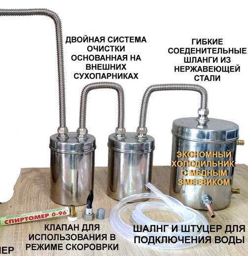 Самогонный аппарат, дистиллятор из не ржавеющей стали с сухопарником не дает привкусов, для самогоноварения и дистилляции. Надежен, прост в обращении, экономичен, прошел все необходимые проверки.