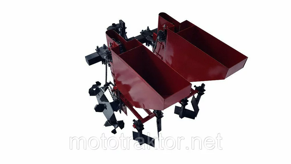 Сажалка предназначена для двухрядной посадки чеснока с размерами зубчика 15-25 мм. Ширина междурядья регулируется. Совмещается с мотоблоками и мототракторамы, мощность которых не менее 6 л.с.