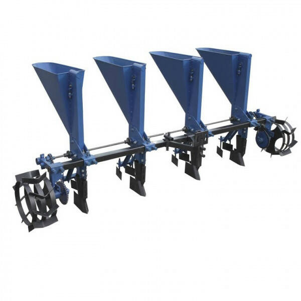 Чеснокосажалка 4х рядная (ложки стандарт 24,5) (ЧС4). Чеснокасажалка специально изготовлена для использования с мощным мототрактором. От чеснока сажалки ЧС8 отличается конструкцией прицепного устройства. Почва требует подготовки. Для посадки необходимо использовать откалиброванные зубки чеснока размером 15-25 мм. Емкость бункера для посадочного материала составляет 10 литров, количество бункеров – 4 шт.