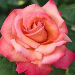 Роза Христофор Колумб (Rose Christophe Colomb). Цветки розы ярко-оранжевой окраски, меняющейся по мере цветения от периферии к центру на более интенсивную красную. Форма цветков настолько идеальна, что они даже кажутся ненастоящими - лепестки плотные, слегка заостренные, очень тесно уложены и словно раскручиваются по спирали, формируя высокий центр цветка. И это совершенство достигается всего лишь 27 лепестками! Обычно появляются в кистях по 3-7 шт. Кусты- с густой темно-зеленой и глянцевитой листвой, очень колючий, сильно-рослый.. Сорт зимостоек и устойчив к заболеваниям. Награжден золотой медалью (Дурбанвилль,1990)