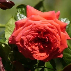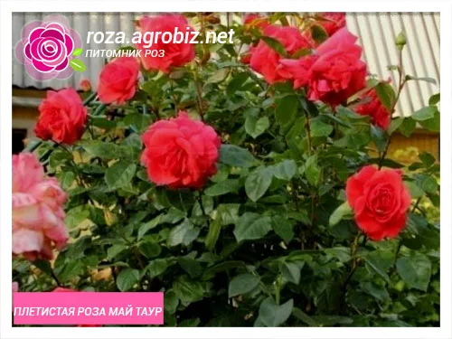 Роза Май Таур - очаровательная плетистая роза с повторным, обильным цветением. Куст сильно-рослый до 3 метров в высоту, мощный с шипами. Бутон крупный до 14 см в диаметре, формы старинных роз, оранжево-красной окраски, с тонким, нежным ароматом. Устойчивость к заболеваниям высокая, морозостойкость средняя.