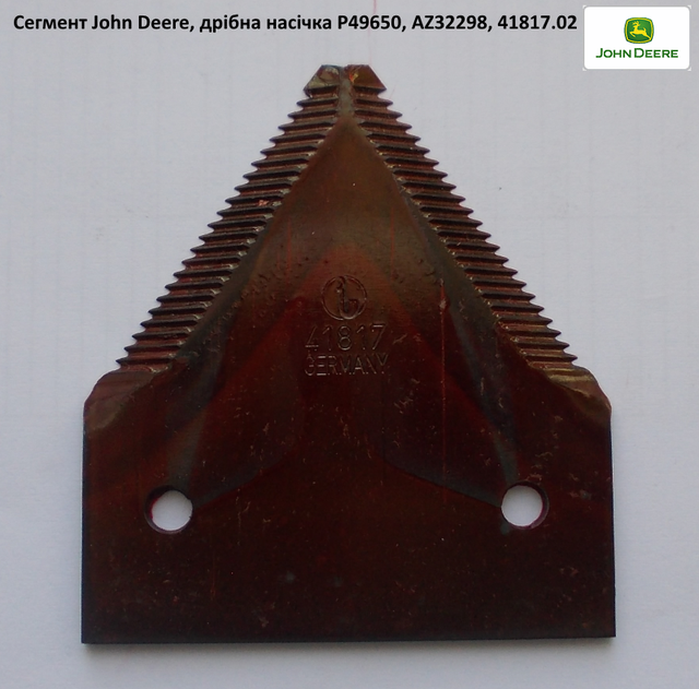 Сегмент на зерновую жатку John Deere, AZ32298 под заклепку М6х18, аналог: ( P49650, 41817.02 )