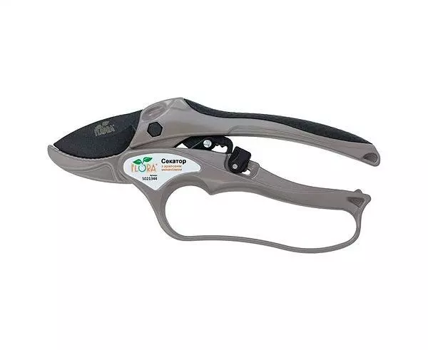 Секатор с храповым механизмом Flora 5021344 205мм - предназначен для обрезания побегов и нетолстых веток при формировании и прореживании кроны деревьев, кустарников, сборе винограда и тд. Особенность данной модели - храповый механизм (“трещетка”), который позволяет резать достаточно толстые ветки не прилагая при этом больших усилий.