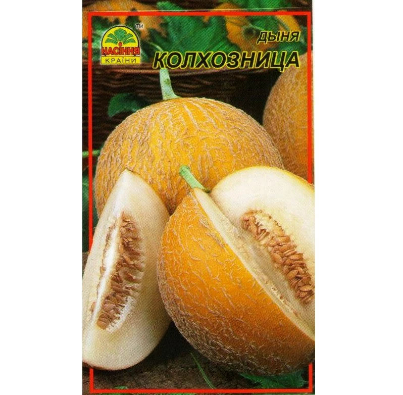 Дыня колхозница. Среднеспелый сорт: от всходов до начала созревания 75-90 дней. Плод круглый, желто-оранжевый, средняя масса 750 г. Мякоть сладкая, белая, иногда зеленоватая. Схема посадки 120*60 см.