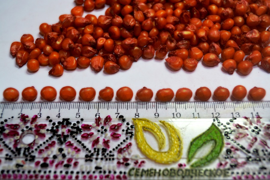 Початок конусно-цилиндрической формы, длина 20-22 см, число рядов зёрен 14-16, зёрен в ряду 35-40. Стержень красный, высота прикрепления початка 90-100 см. Зерно кремнисто- зубовидное, желто-оранжевое, округло-продолговатой формы. Масса 1000 зёрен 250-270 г. Высота растения 200-220 см, не кустится, устойчивое к полеганию и ломкости стебля.
