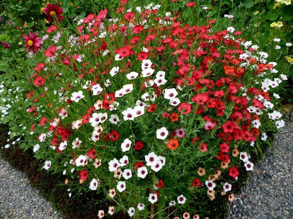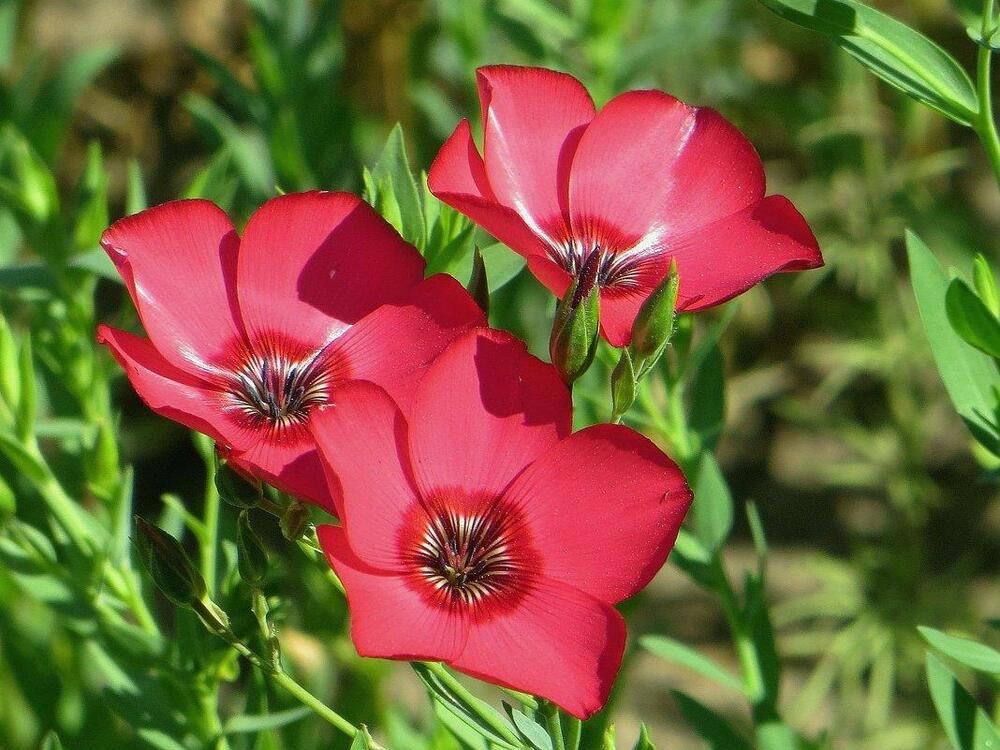Из изящного льна можно с успехом садить большие декоративные группы. Летом лен покрывается обильной пеной красных цветков ( до 150 штук на одном кусте ). Достигая высоты  около полуметра, лен послужит удачным фоном для других, более высоких цветов.