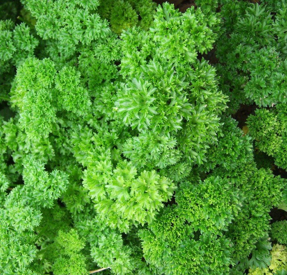 Петрушка кучерявая. Разновидность листовой петрушки с темно-зелеными, очень красивыми листьями. Сорт ранний, сравнительно компактный, имеет приятный аромат. Способен переносить низкую температуру и засуху. Схема посадки 3×20см