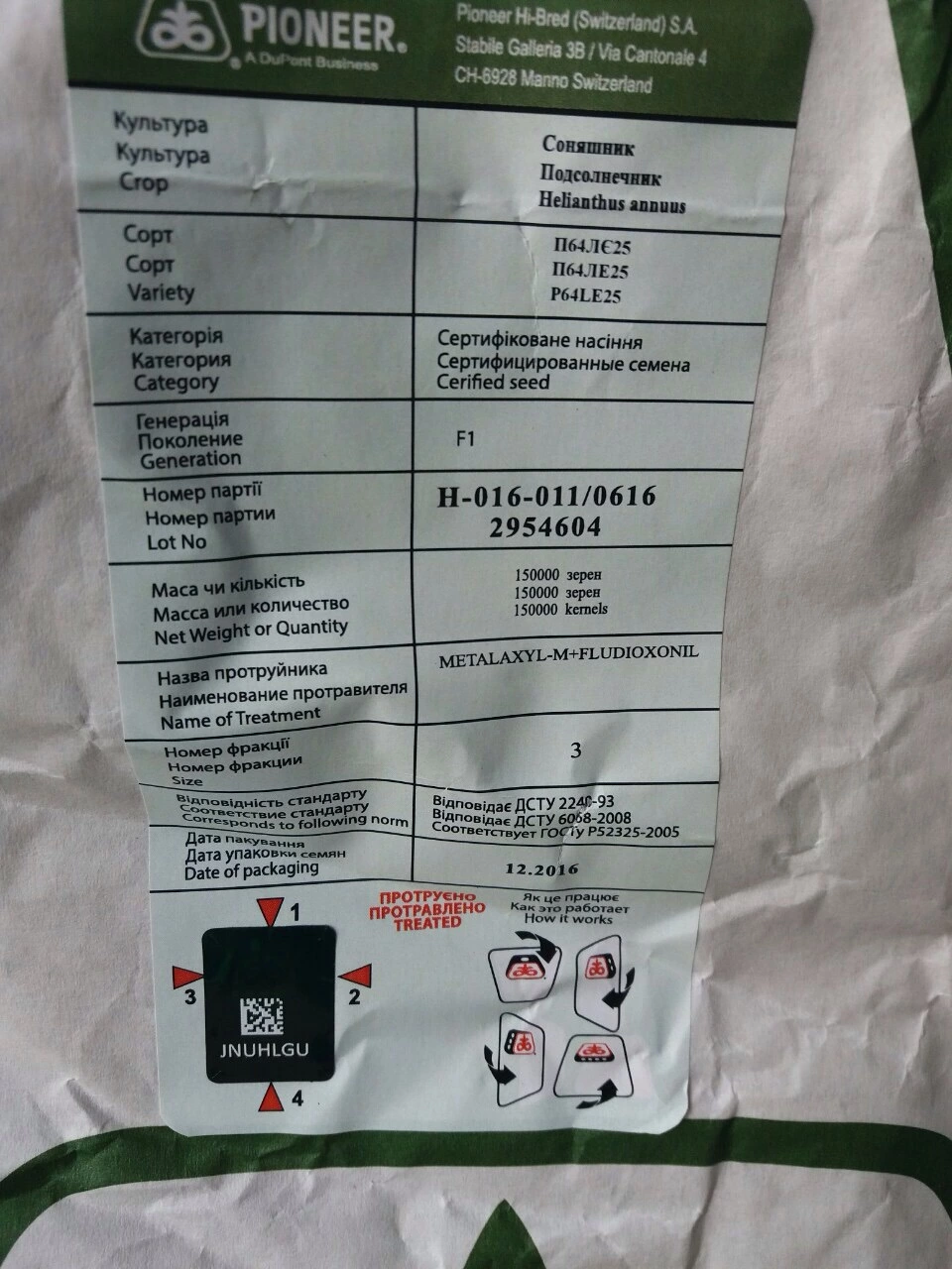 Семена подсолнечника Пионер (Pioneer) пр64ле25