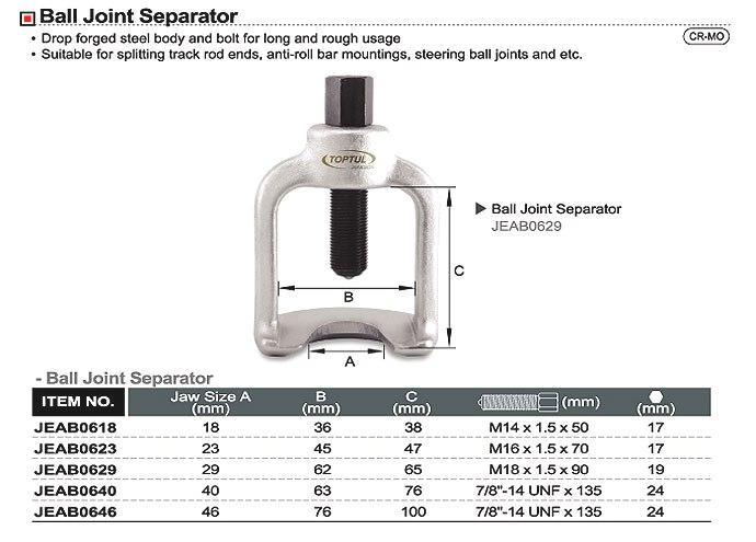 Съемник шаровых опор и наконечников 18х36х38мм TOPTUL JEAB0618