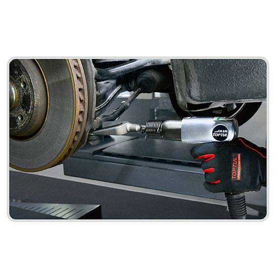 TOPTUL KAJA18H3 — профессиональный съемник типа "вилка", предназначенный для быстрого и эффективного демонтажа шаровых опор, рулевых тяг и сошек на большинстве легковых автомобилей и легких грузовиков. Совместим с пневматическими молотками, что значительно упрощает процесс демонтажа без лишних усилий.