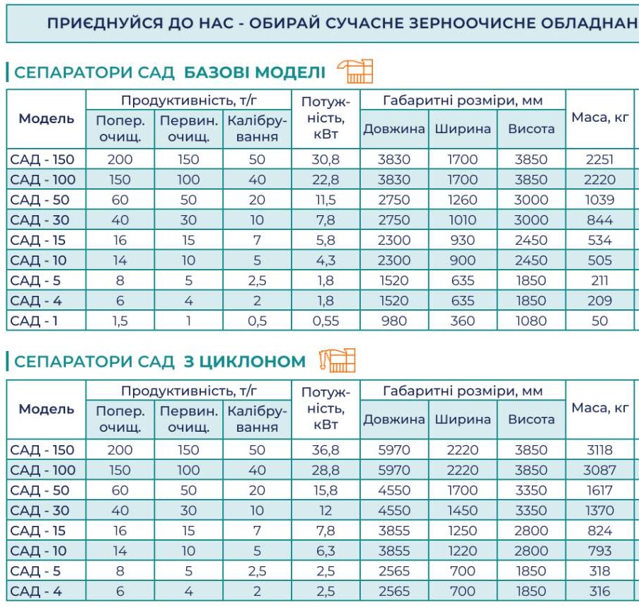 Особенности сепаратора САД для очистки и калибровки семян