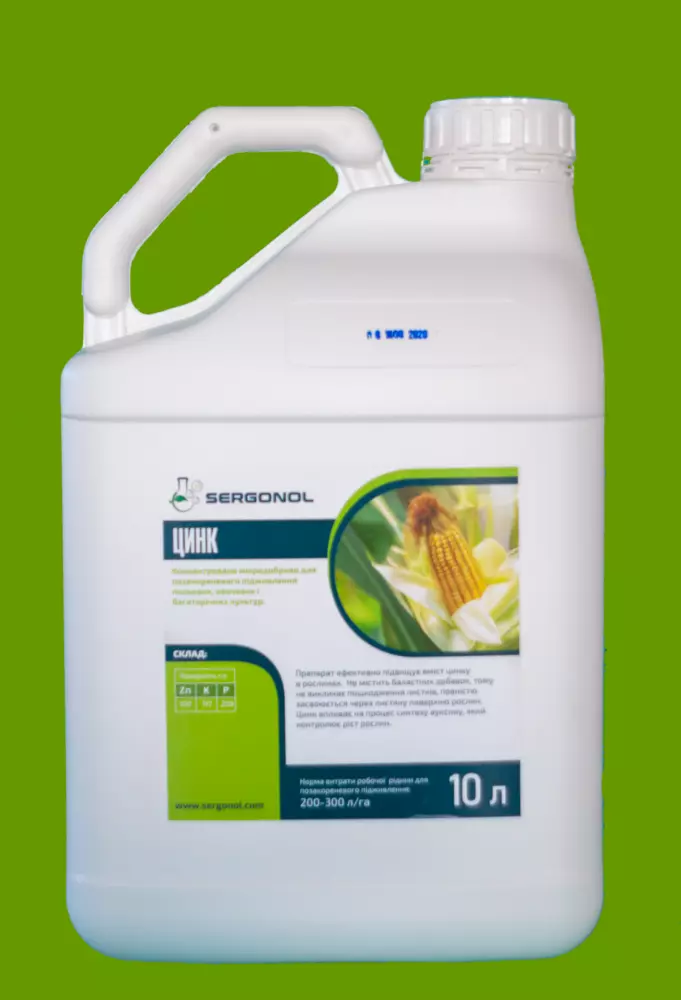 Препарат содержит высокую концентрацию ионов цинка, что обеспечивает уменьшение доз внесения и соответственно затрат на гектар. "SERGONOL®_ЦИНК" очень быстро усваивается листьями и устраняет заболевания, вызванные дефицитом цинка.