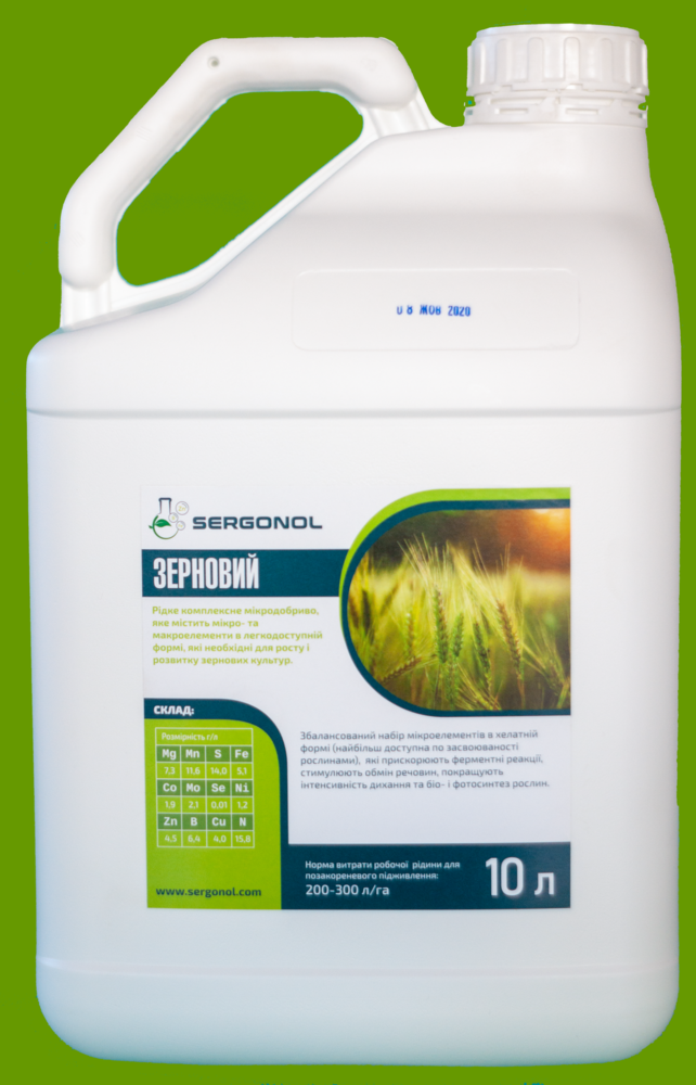 В комплексе препарат "SERGONOL®_ЗЕРНОВОЙ" существенно ускоряет ферментные реакции, оживляет обмен веществ, улучшают интенсивность дыхания, био- и фотосинтез. Ионный заряд активных частиц металлов обеспечивает отличное прилипание к поверхностям и быстрое проникновения в клетки растений.