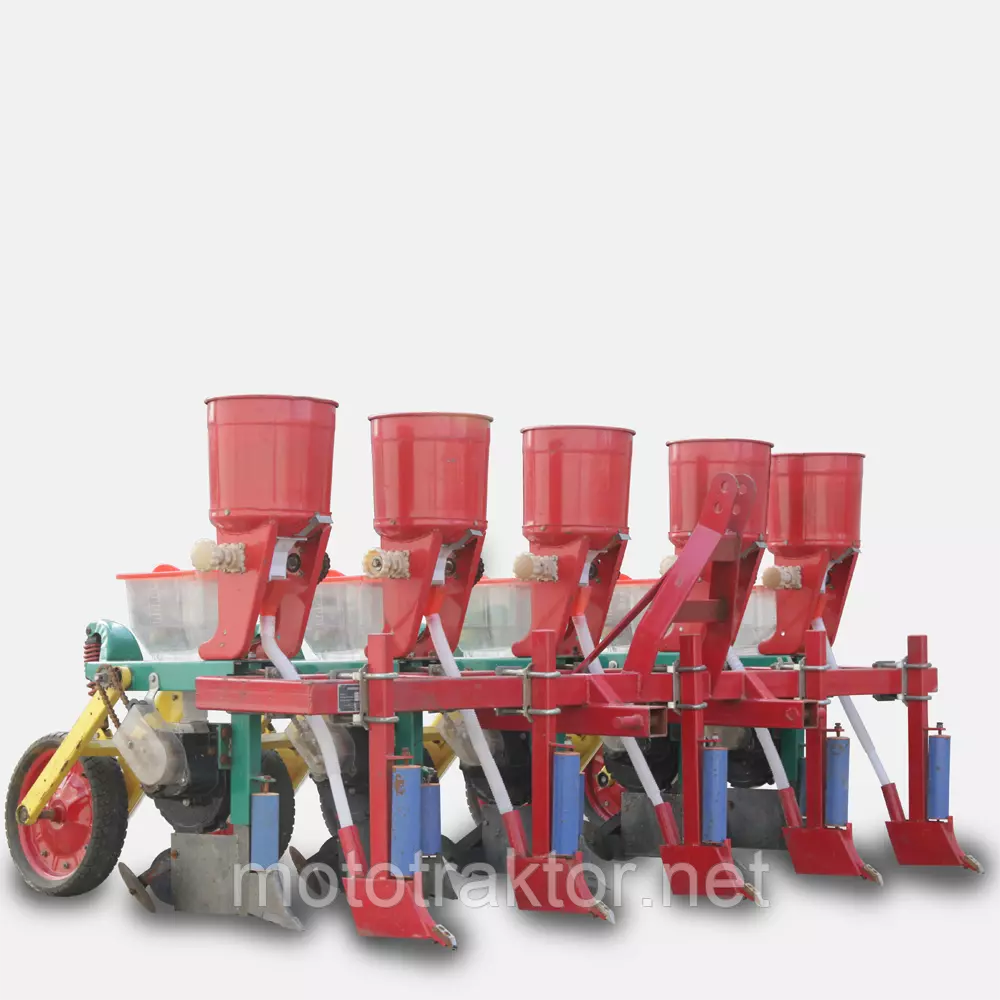 Способен одновременно засевать 5 рядов;Сеялка овощная 2BYF-5 (5-ти рядная) служит для высадки пропашных сельскохозяйственных культур(кукурузы, подсолнуха и т.д). Для наилучшей производительности, рекомендуется устанавливать на трактора 25-35 л.с. Имеет ряд конструктивных и технических преимуществ перед аналогичным навесным оборудованием: