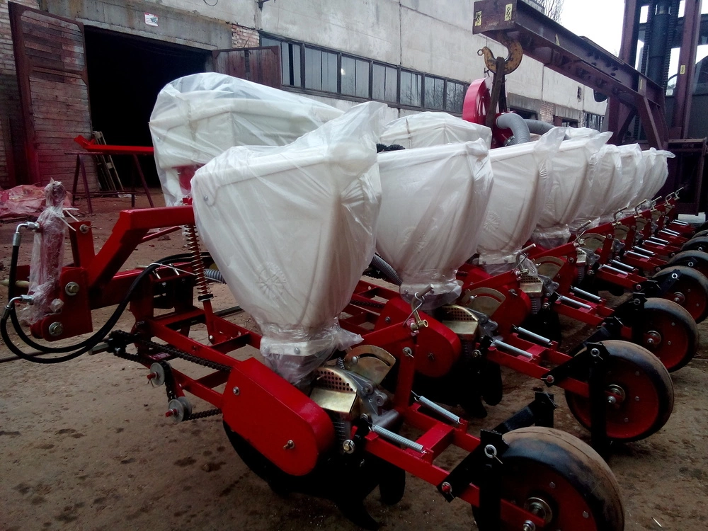 Сеялки  СУ-8М , предназначені для пунктирного посева калиброванных и некалиброванных отсортированных семян кукурузы, подсолнечника и прочих культур с одновременным внесением минеральных удобрений и прикатыванием почвы в рядках.  В сеялке СУ-8М создание разрежения обеспечивается вентилятором  ВР-1, установленным на сеялку, приводимого от ВОМ  трактора частота вращения вала ротора вентилятора 4700 об/мин., частота вращения хвостовика ВОМ, 540 об/мин.Несущий брус рамы сеялки является ресивером ее пневмосистемы. Сеялка СУ-8М агрегатируется с тракторами тяговым усилием от 0,9 до 2 т. Сеялка комплектуется пластиковыми зерновыми и туковыми бункерами.