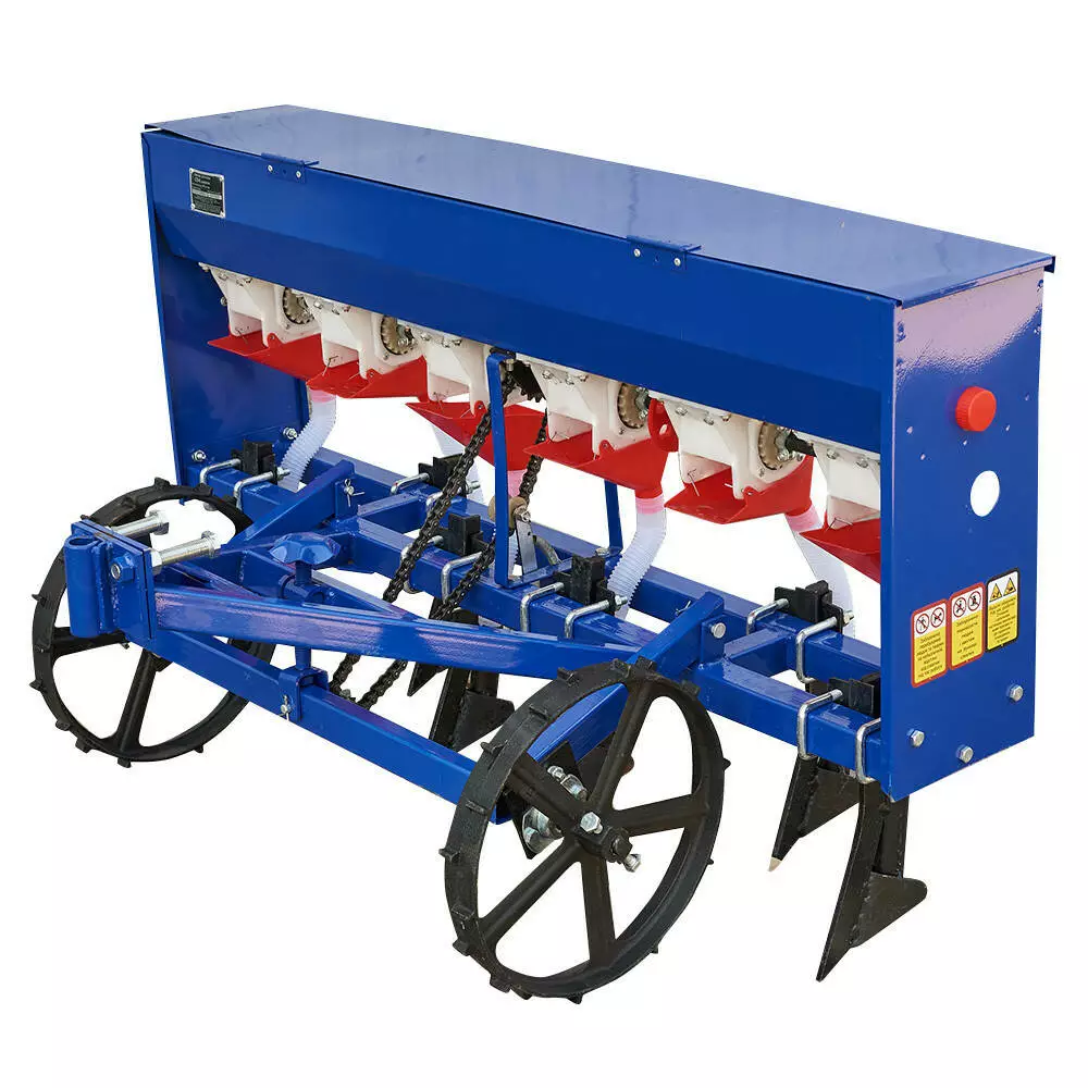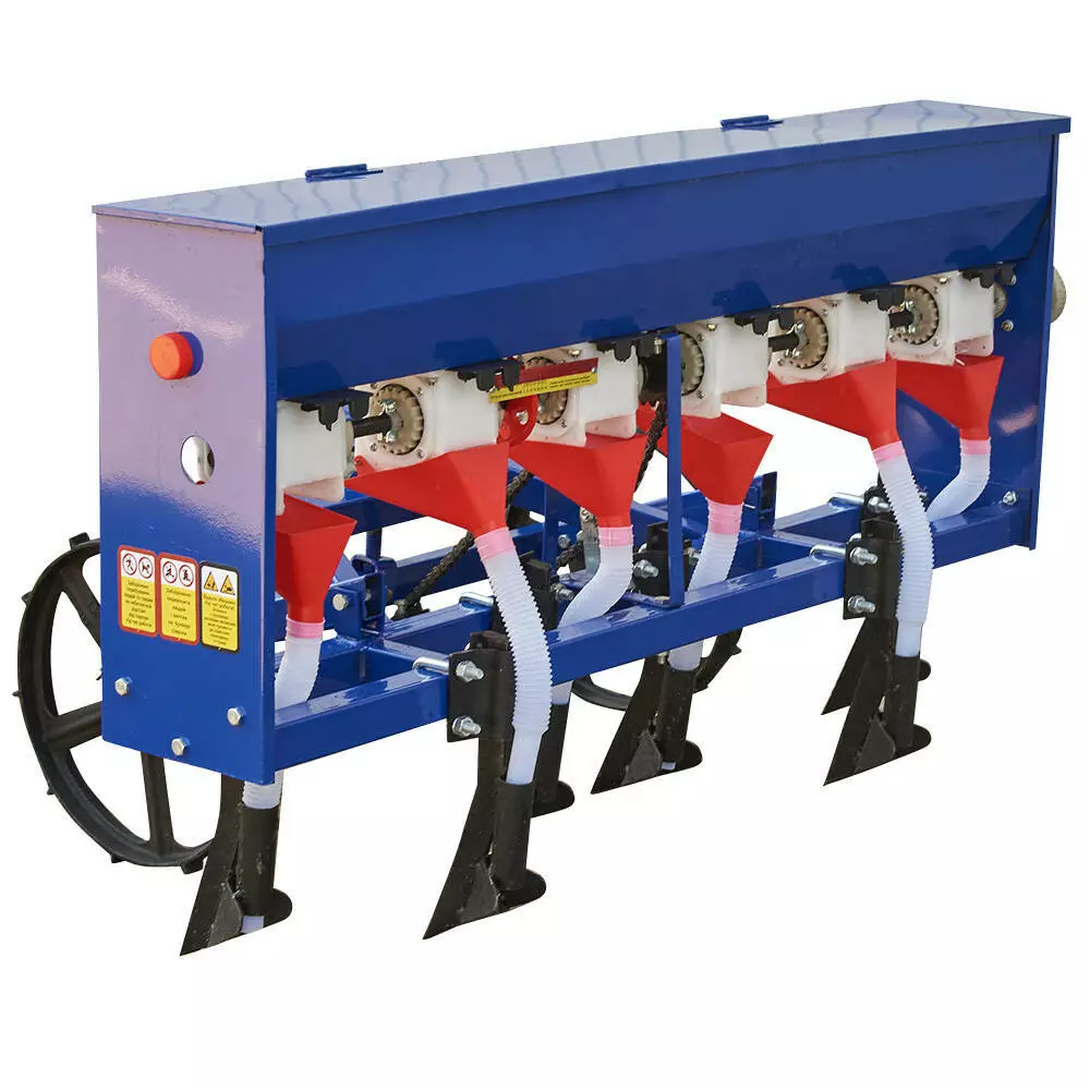 Сеялка легко крепится к мотоблоку с помощью стандартной сцепки. Её конструкция максимально проста и удобна в обслуживании, что делает ее отличным выбором как для начинающих фермеров, так и для опытных владельцев хозяйств. Металлический корпус устойчив к коррозии и механическим повреждениям, благодаря чему вы можете быть уверены в долговечности оборудования.